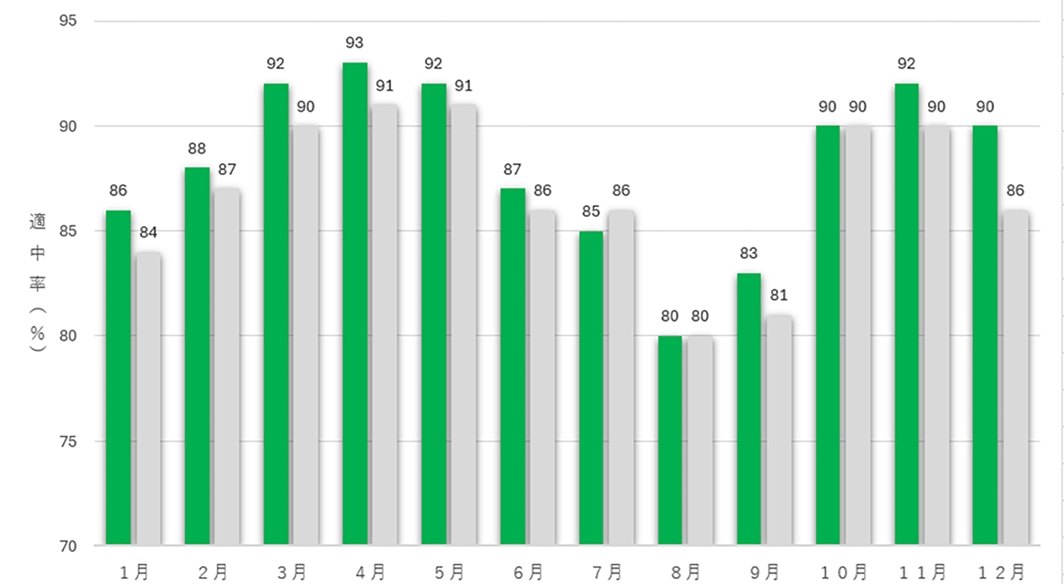 SYNFOSの出力結果は統計的な補正を加えたうえで予測情報提供に利用されているほか、「JWA統合気象予測 」の入力モデルの一つとしても利用されています。
